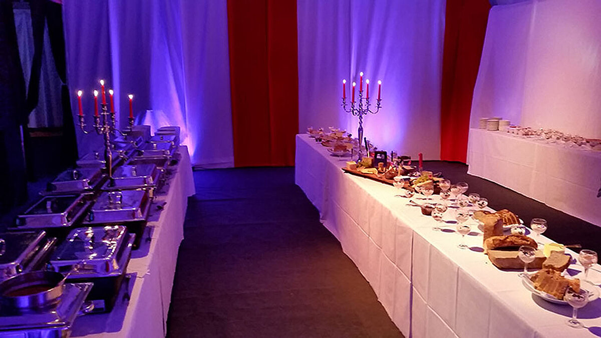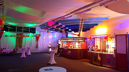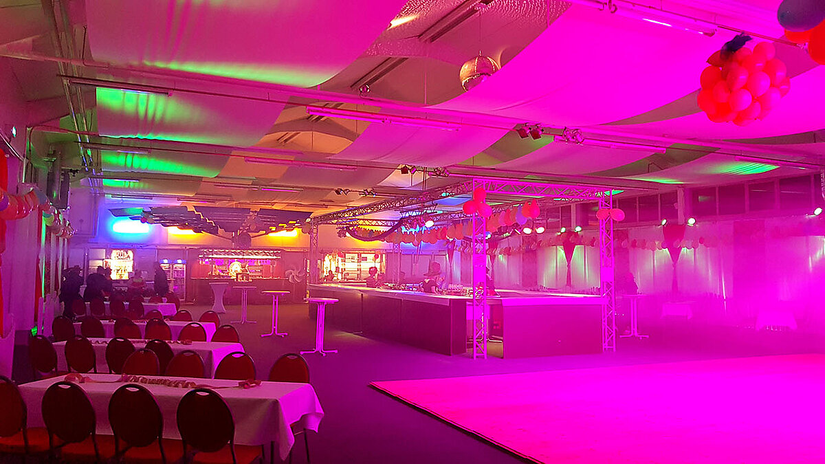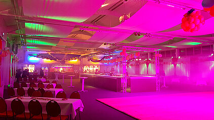 Die Beleuchtung unserer Festhalle können wir farblich variieren und auf das von Ihnen gewünscht Ambiente abgestimmt werden.