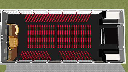 Ganze 800 Personen können hier mit bester Sicht auf die Bühne die Veranstaltung erleben.