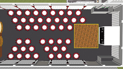 - Verschiebbare Bühne mit 5 x 6m, je nach Veranstaltung auch größer